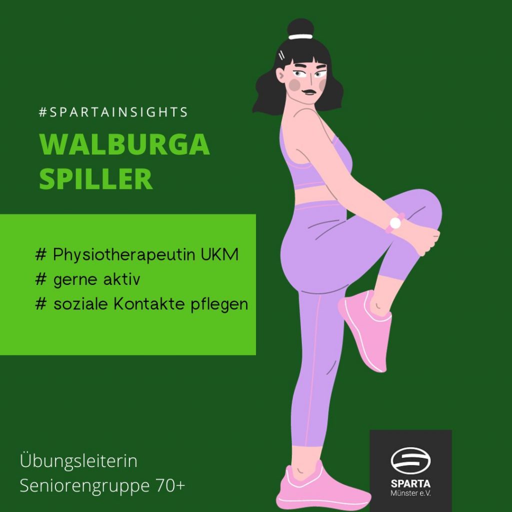 Heute trefft ihr hier Walburga. Sie ist seit 2011 bei SPARTA Münster aktiv und fühlt sich dem Verein sehr verbunden. Im Bild zum Post findet ihr drei Hashtags, mit denen Walburga sich selbst vorstellt.